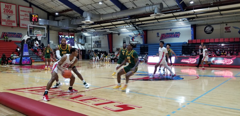 The game looked to be out of reach with 45 seconds left NSU had the ball and was up 69-63. However, on a bad inbounds pass Delaware State’s John Stansbury stole the inbounds pass near the free-throw line and euro stepped his way to the basket for a and one layup. After an empty spartan possession, DSU had the ability to tie the game in the last possession but the play they ran looked discombobulated and ended in a missed three by the Hornets as Norfolk State escaped Dover with a hard-fought win.