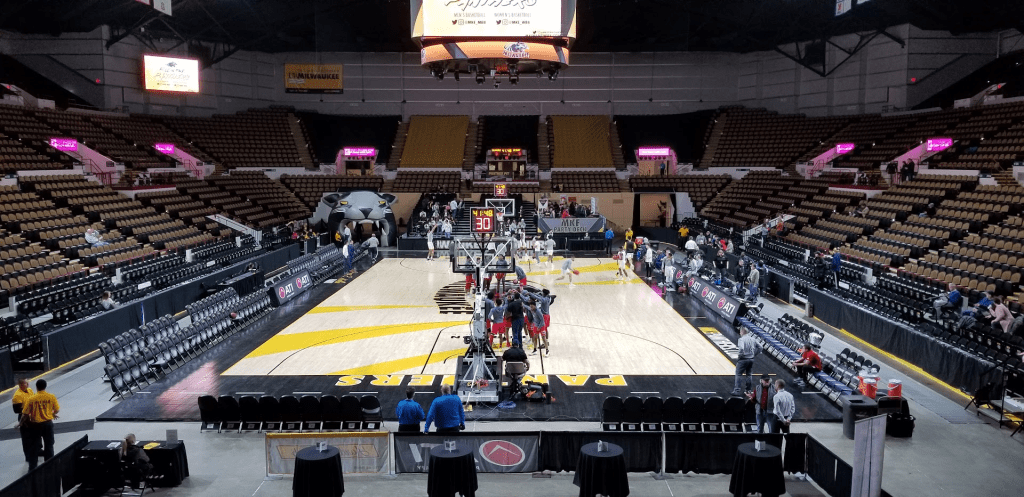 Fort Wayne is the only school that I have in the main 1-49 portion of the rankings twice. This is because they actually do a pretty good job of splitting their home games between the off campus Allen County War Memorial Coliseum which is the city of Fort Wayne’s primary arena hosting the NBA G-League’s Mad Ants and national concert tours and the on-campus Hilliard Gates Sports Center. The split is probably 2/3rds Coliseum 1/3rd Gates. I did prefer seeing games at the Gates, but I’ll at least give the coliseum credit that it is unique. There are towering stands along both sidelines that gives it an Assembly Hall-esque feel. It gets downgraded though because the rows are super tight and the building is showing its age.