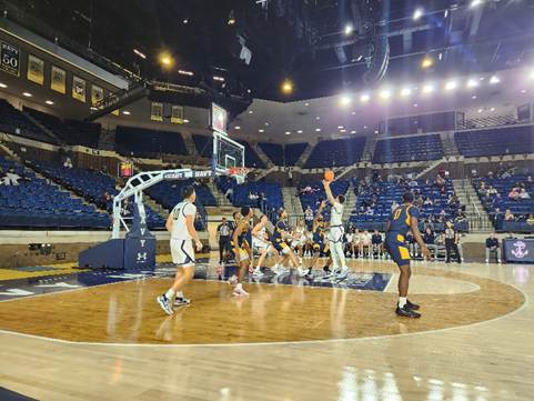 Coppin State did not score until nearly seven minutes into the game when Taj Thweatt hit a pair of free throws at the 13:10 mark. The Eagles overcame the slow start by cutting an 11-point Navy lead down to just two with seven minutes in the first half. Late in the first half Navy senior guard Austin Benigni recorded his 1,500 career point. He is one of only nine active players at the division one level to have scored 1,500 points and recorded 350 assists. Despite working their way back into the game, Coppin State once again let Navy build up a double-digit lead after going nearly five and a half game minutes without scoring. With 2:04 to go until halftime, Navy led 33-24 and was doing a good job defensively on the Eagles. Navy allowed only four second-chance points. At halftime, Navy sported a 36-24 lead.