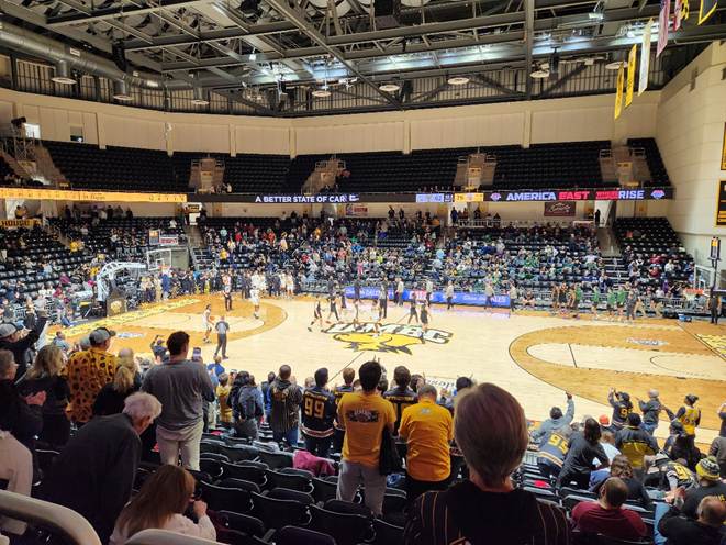 Both offenses slowed down in the second half. Just like in the first half, Vermont mounted a comeback slowly chipping away at the lead and getting it down to six via three pointers and free throws. Ace Valentine connected on a three-pointer to put UMBC back up nine with a little over five minutes to play. The crowd at Chesapeake Employers Insurance Arena roared to life. The Catamounts did not go away quietly, still playing aggressive defense that caused steals in the final minutes. Gus Yalden banked in a deep three-pointer with 61 seconds in the game to get the score within nine. Vermont set up a press out of the timeout and initiated the fouling strategy to extend the game. It proved to be too little too late, and UMBC prevailed 75-62. The crowd came to their feet in the final seconds to congratulate the team on their first home victory over Vermont in five years to the day.